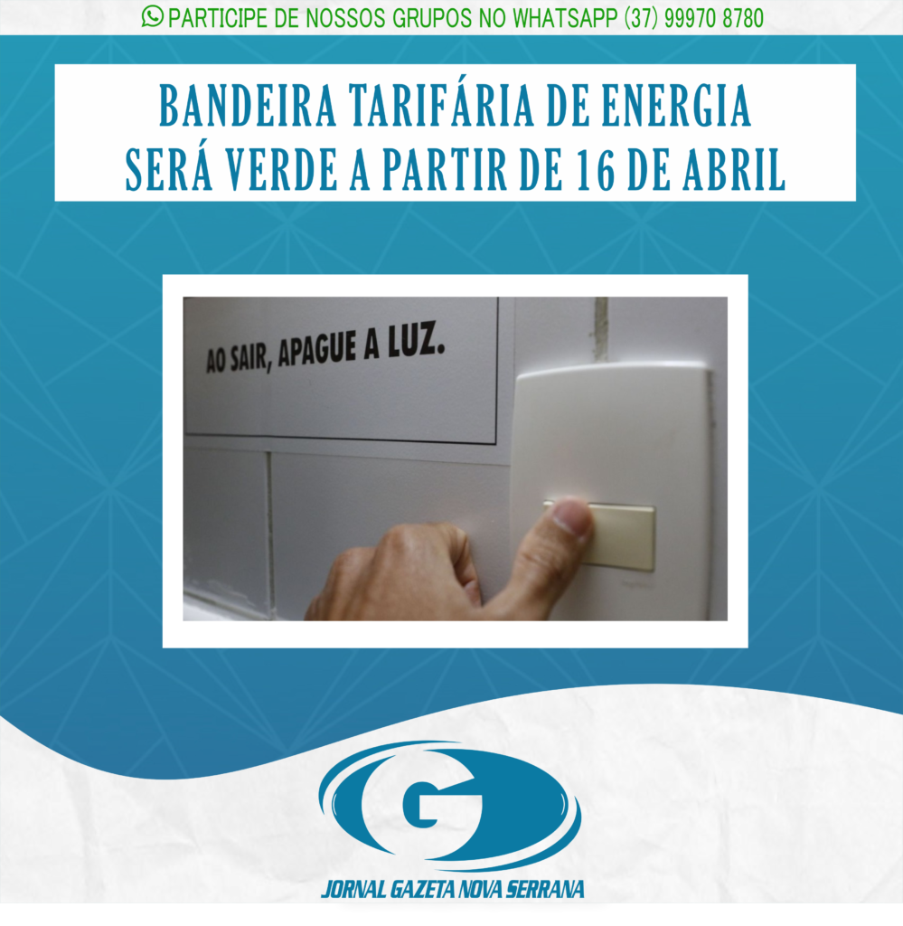 O Ministério de Minas e Energia (MME) anunciou nesta quarta-feira (6) o fim da bandeira de escassez hídrica, em vigor desde setembro do ano passado, e que gerava uma taxa extra na conta de energia elétrica de R$ 14,20 a cada 100 quilowatts-hora (kWh) consumidos. Com o fim da bandeira, não haverá mais cobrança de taxa extra na conta de luz. A medida entra em vigor a partir do dia 16 de abril.