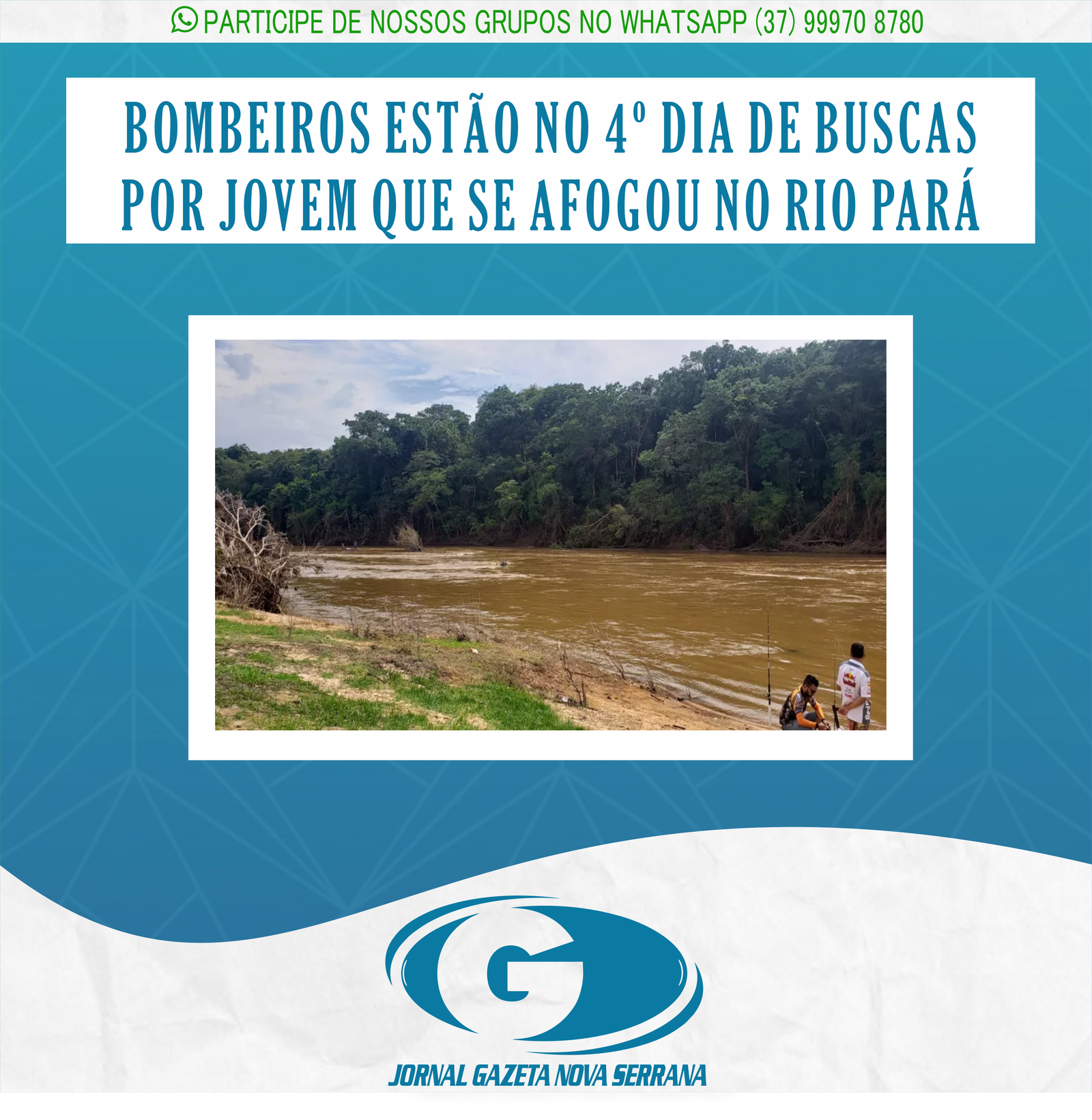 O Corpo de Bombeiros chegaram ao 4º dia de buscas por um jovem de 19 anos que se afogou no Rio Pará, no local conhecido como Pontal, zona rural Conceição do Pará. O trabalho de buscas teve início no sábado (12) e segue nesta terça-feira (15).
