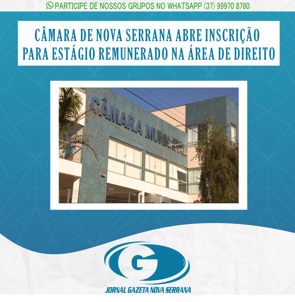 A Câmara Municipal de Nova Serrana abriu, nesta segunda-feira (9,) as inscrições para Processo Seletivo destinado à contratação de estagiários, remunerados, na modalidade não obrigatório (Portaria nº 023/2022).