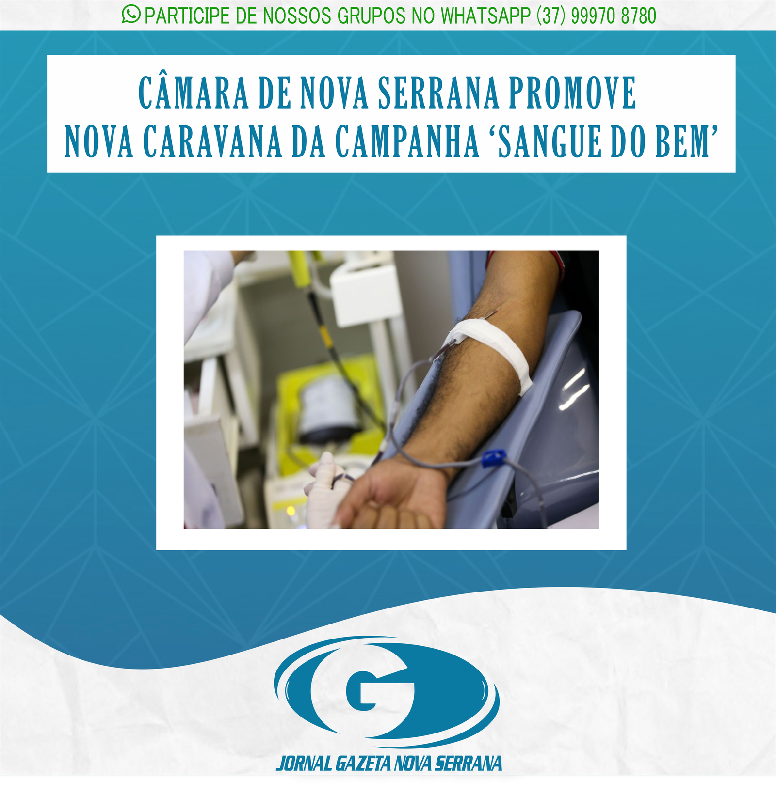 A Câmara de Nova Serrana realizará mais uma caravana da “Campanha Sangue do Bem” com o objetivo de levar doadores para praticar o gesto de salvar vidas a ajudar a abastecer os estoques dos bancos que atendem à população.