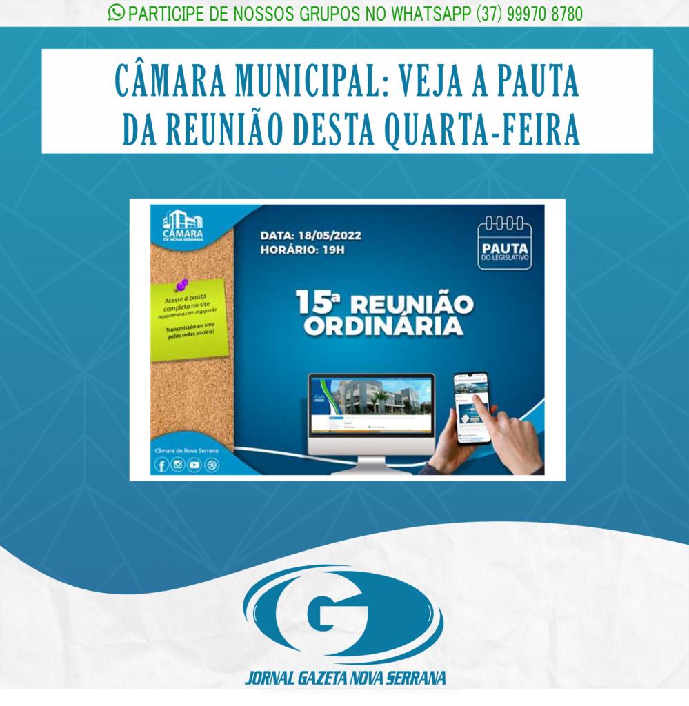A 15ª reunião ordinária da Câmara Municipal de Nova Serrana será realizada nesta quarta-feira (18), às 19h. Veja o que será debatido: