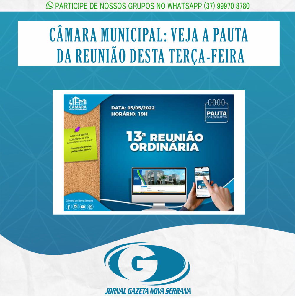 A pauta completa pode ser conferida no site: www.novaserrana.cam.mg.gov.br