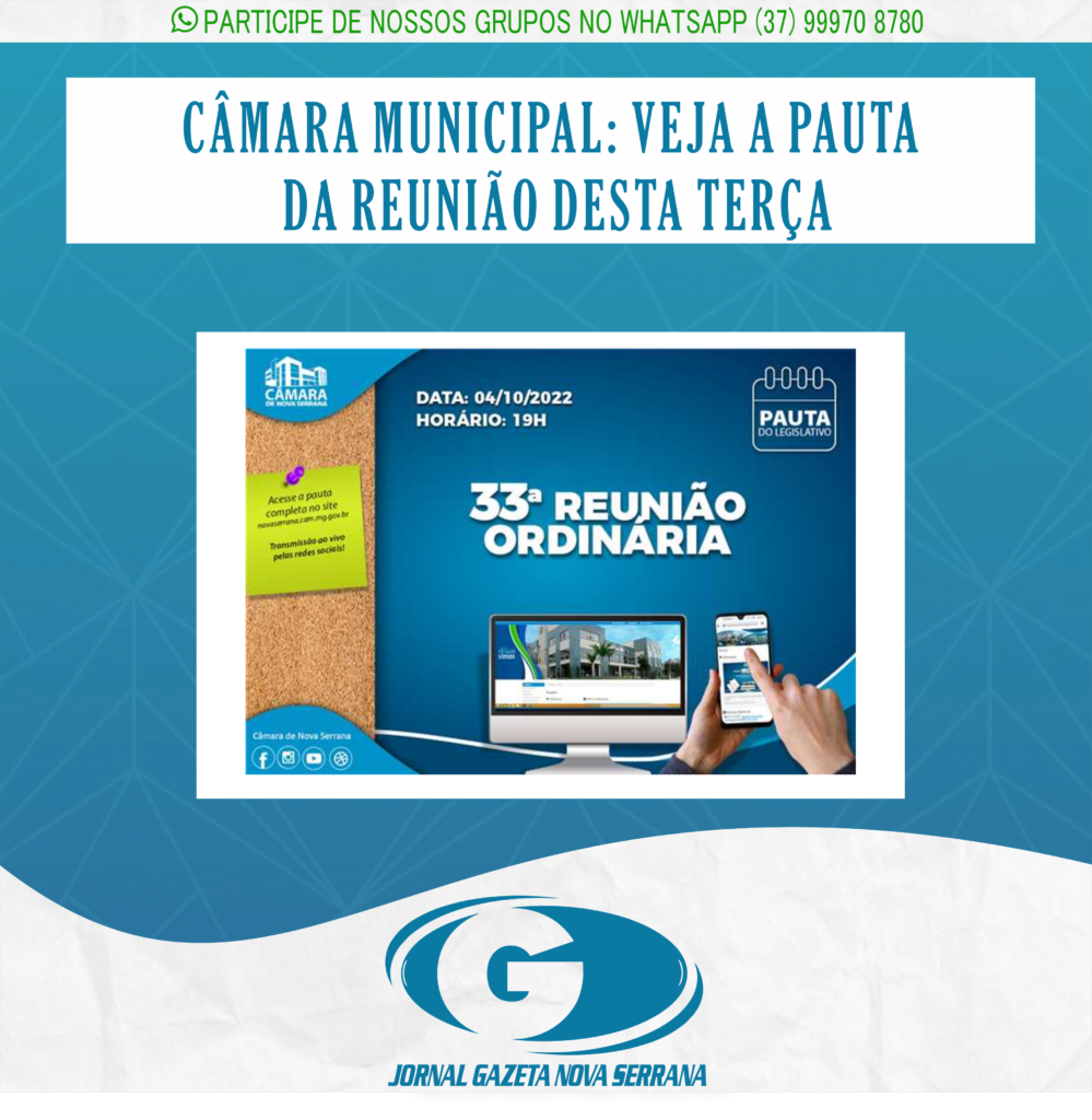 A Câmara Municipal de Nova Serrana promove, nesta terça-feira (4), a 33ª reunião ordinária às 19h. Saiba o que será votado: