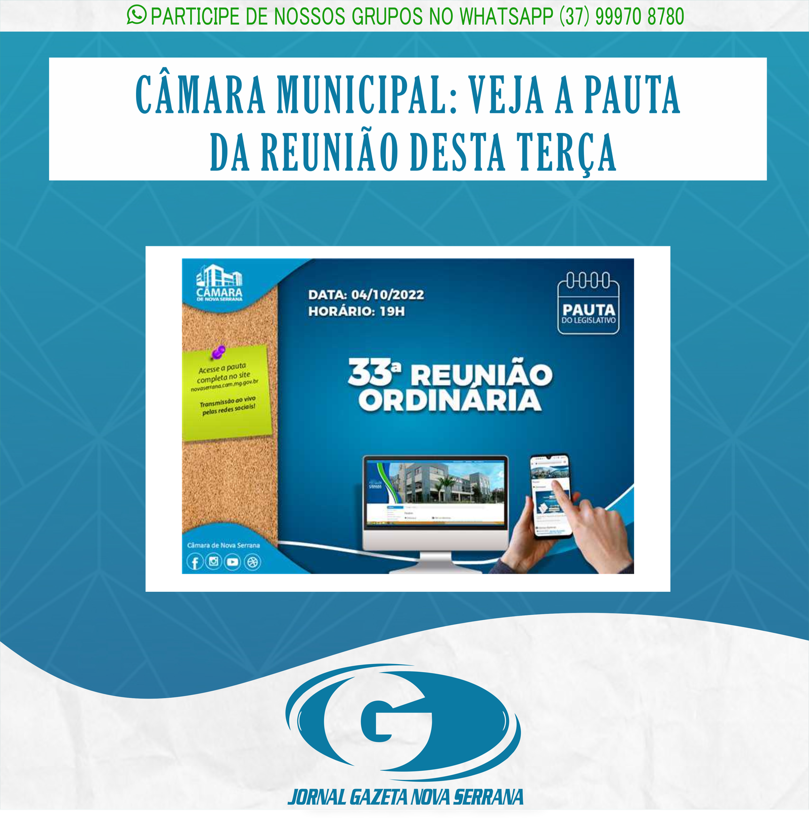 JORNAL GAZETA DE NOVA SERRANA, NOTÍCIA E INFORMAÇÃO EM 1° LUGAR! PARTICIPE DO NOSSO GRUPO NO WHATSAPP: (37)99970-8780
