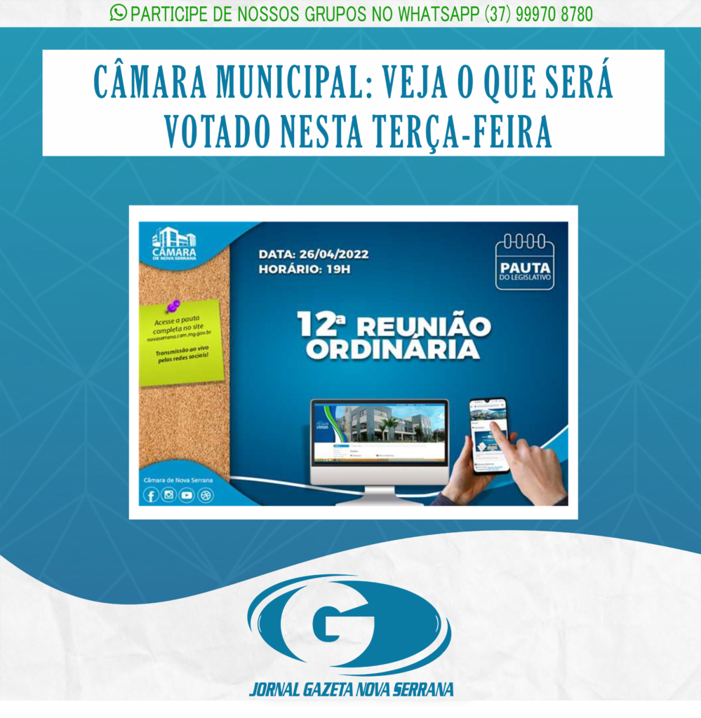 A pauta completa pode ser conferida no site: www.novaserrana.cam.mg.gov.br