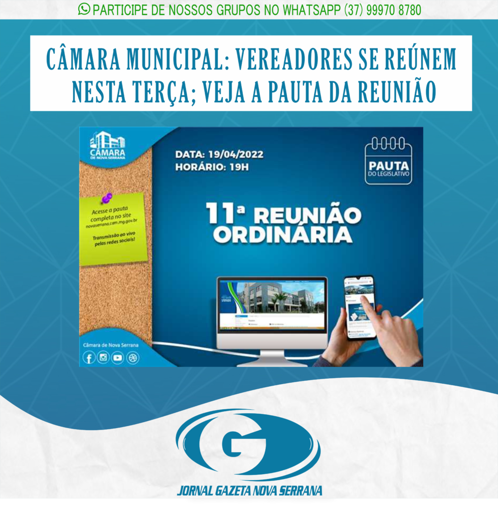 A 11ª reunião ordinária da Câmara Municipal de Nova Serrana será realizada nesta terça-feira (19), às 19h. Veja o que será debatido: