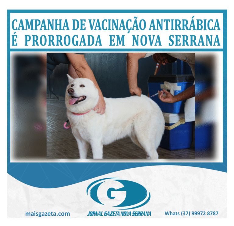 A Prefeitura de Nova Serrana informa que a Campanha de Vacinação Antirrábica foi prorrogada e realizará mais um Dia D de imunização no próximo sábado, 18 de outubro, em diversos pontos da zona urbana.