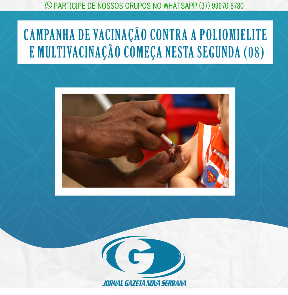 Começa nesta segunda-feira (08) em Nova Serrana, a Campanha Nacional de Vacinação contra a Poliomielite e Multivacinação de 2022. O objetivo é alcançar cobertura vacinal igual ou maior que 95% para a vacina poliomielite na faixa etária de 1 a menores de 5 anos de idade, além de reduzir o número de não vacinados de crianças e adolescentes menores de 15 anos e melhorar as coberturas vacinais, conforme o Calendário Nacional de Vacinação.