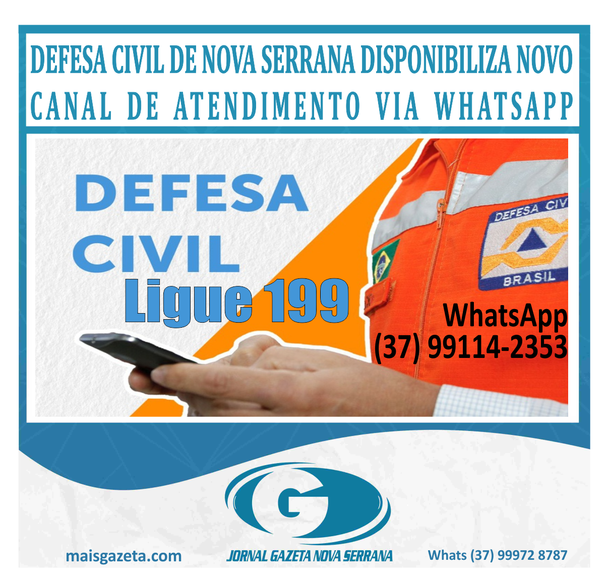 A Prefeitura de Nova Serrana informa que agora a população conta com um novo canal de atendimento da Defesa Civil Municipal, para emergências e solicitações de apoio.