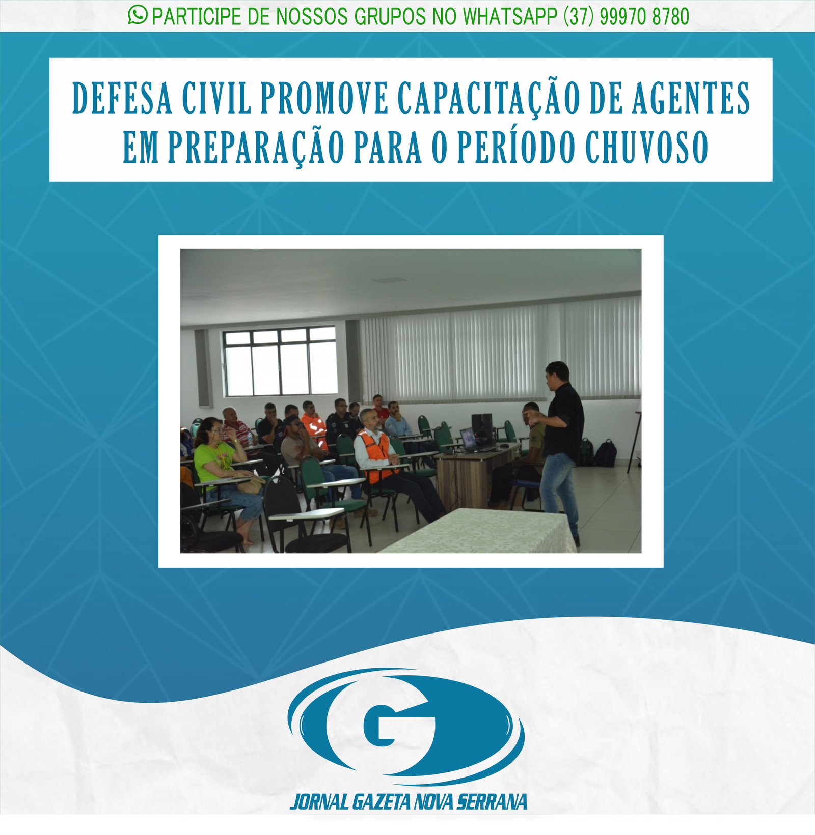 A Defesa Civil de Nova Serrana realizou, na segunda-feira (19), uma capacitação para os agentes que atuam na cidade. O objetivo é preparar a equipe para o período chuvoso, uma vez que os chamados de ocorrência aumentam consideravelmente nesta época.