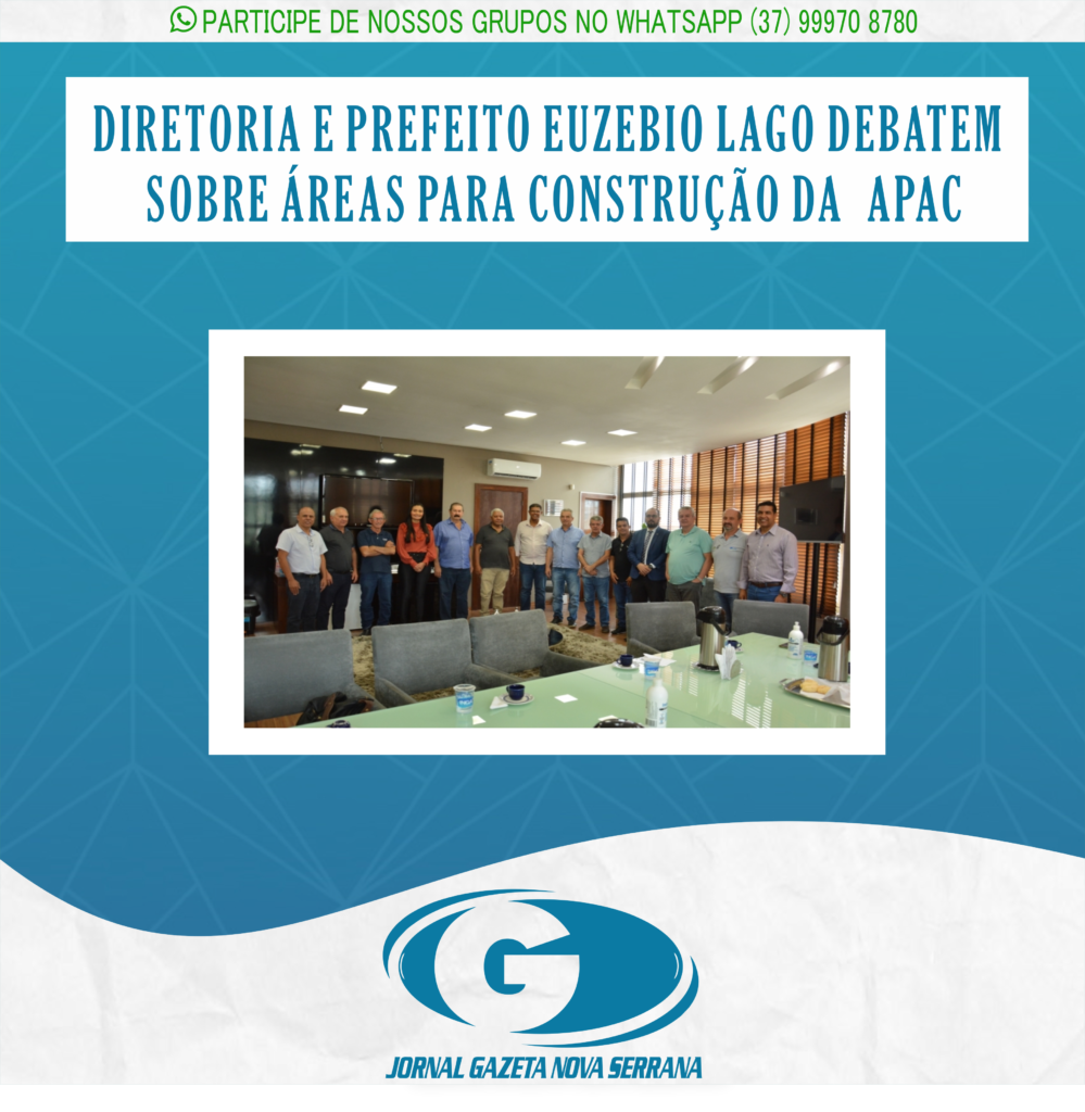 Os membros da diretoria da Associação de Proteção e Assistência aos Condenados (Apac) se reuniram na última semana prefeito Euzebio Lago com o para discutir sobre possíveis áreas para a construção da sede da associação, recém criada em Nova Serrana.