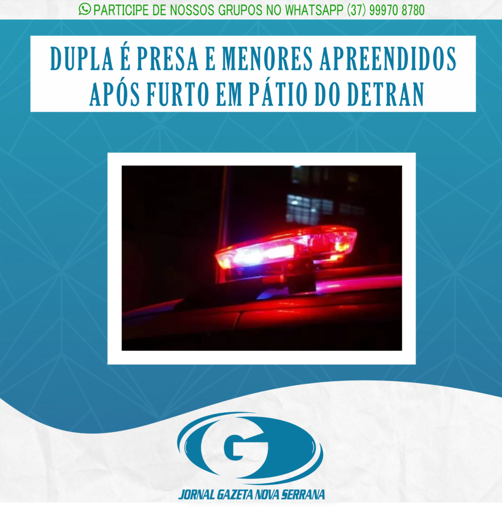Dois homens de 18 e 21 anos e dois adolescentes, de 15 e 17, foram presos/apreendidos na noite de ontem (25) em Nova Serrana. O grupo foi flagrado furtando peças e acessórios de veículos em um pátio do DETRAN localizado no bairro Santa Sara.
