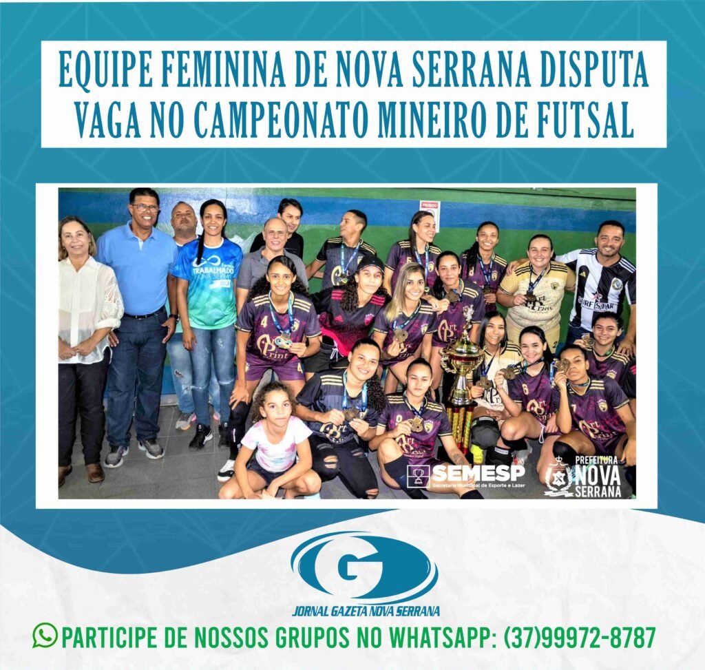 A equipe feminina adulto da Associação Esportiva Futminas Futsal Club de Nova Serrana, irá até a cidade de Uberlândia, para disputar partida válida pelo Campeonato do Interior 2023, promovido pela Federação Mineira de Futsal. As meninas conseguiram a vaga disputando a competição da Liga de Desportos do Centro Oeste Mineiro – LIDCOM, onde foram tricampeãs da competição. O treinador é Fabio da Silva Rodrigues.