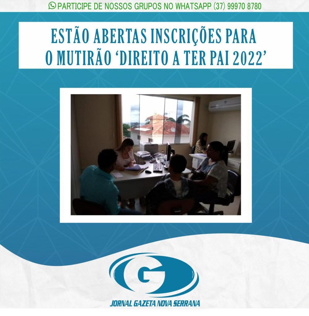 A Defensoria Pública de Minas Gerais (DPMG) está com inscrições abertas para o Mutirão “Direito a Ter Pai” de 2022, que será realizado de forma presencial, nas sedes das unidades participantes, no dia 7 de outubro. O prazo para se inscrever termina no dia 30 de setembro.