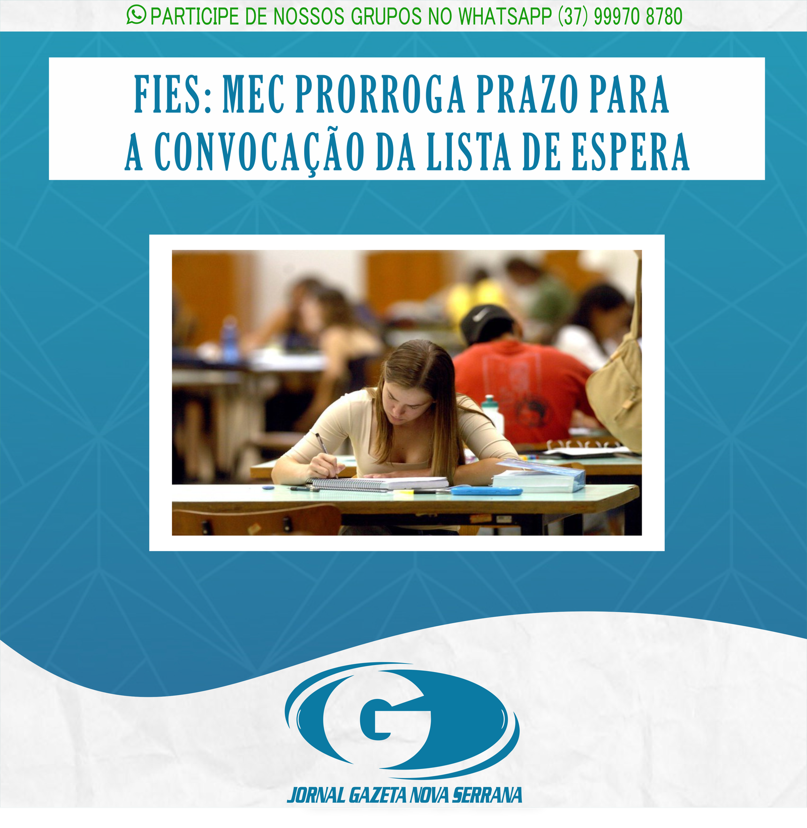 O Ministério da Educação (MEC) prorrogou o prazo para a convocação, por meio da lista de espera, dos candidatos inscritos para o 1º processo seletivo de 2022 do Fundo de Financiamento Estudantil (Fies). O prazo final, que se encerraria na quarta-feira, 4/5, foi ampliado para o dia 26 de maio, até às 23h59.
