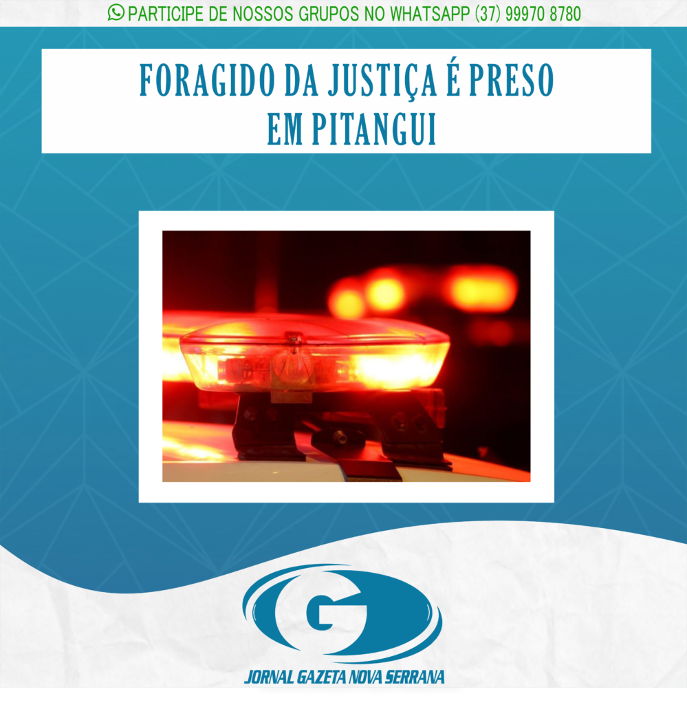 Um homem de 40 anos foi preso ontem (16) em Pitangui por estar foragido da justiça. A Polícia Militar não informou por qual crime ele tinha mandado de prisão em aberto.