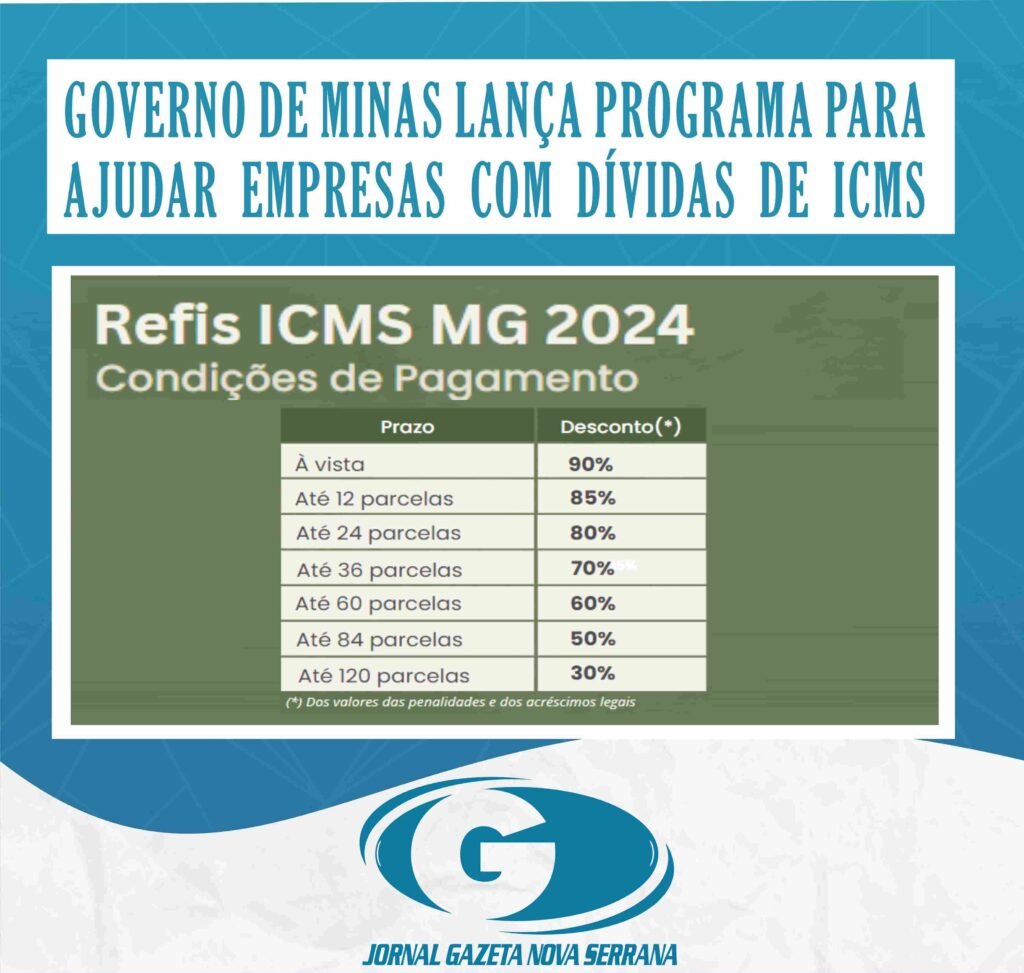 Empresas com dívidas do Imposto sobre Circulação de Mercadorias e Serviços (ICMS) poderão negociar os débitos junto à Secretaria de Estado de Fazenda de Minas Gerais (SEF/MG) em condições especiais. Com prazo de adesão entre 1/4 e 21/6, o programa de regularização de débitos tributários, intitulado Refis ICMS MG 2024, foi publicado na última quarta-feira (27/3) pelo Governo de Minas, no Diário Oficial do Estado. As regras do programa estão dispostas no Decreto 48.790.