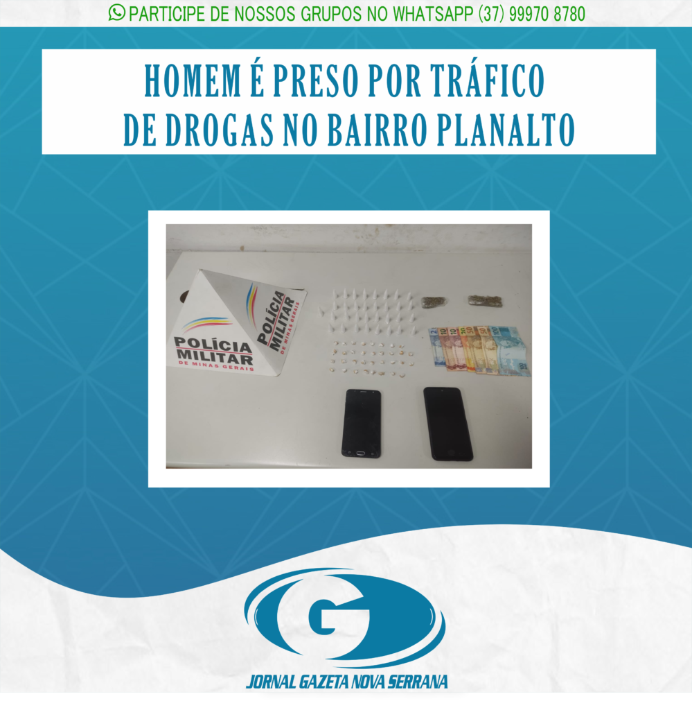 A Polícia Militar disse que, após receber uma denúncia de tráfico, a equipe foi até o bairro Planalto e abordou o indivíduo alvo da denúncia. Ele estava com dinheiro, celular e chave de uma motocicleta usada para o “delivery” de entorpecentes.