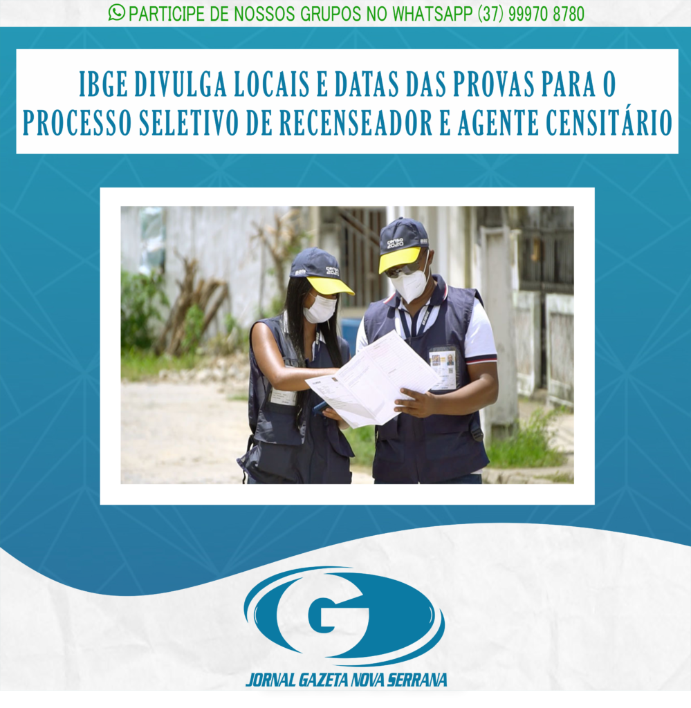 – As provas para Recenseador serão das 9h às 12h (horário de Brasília);