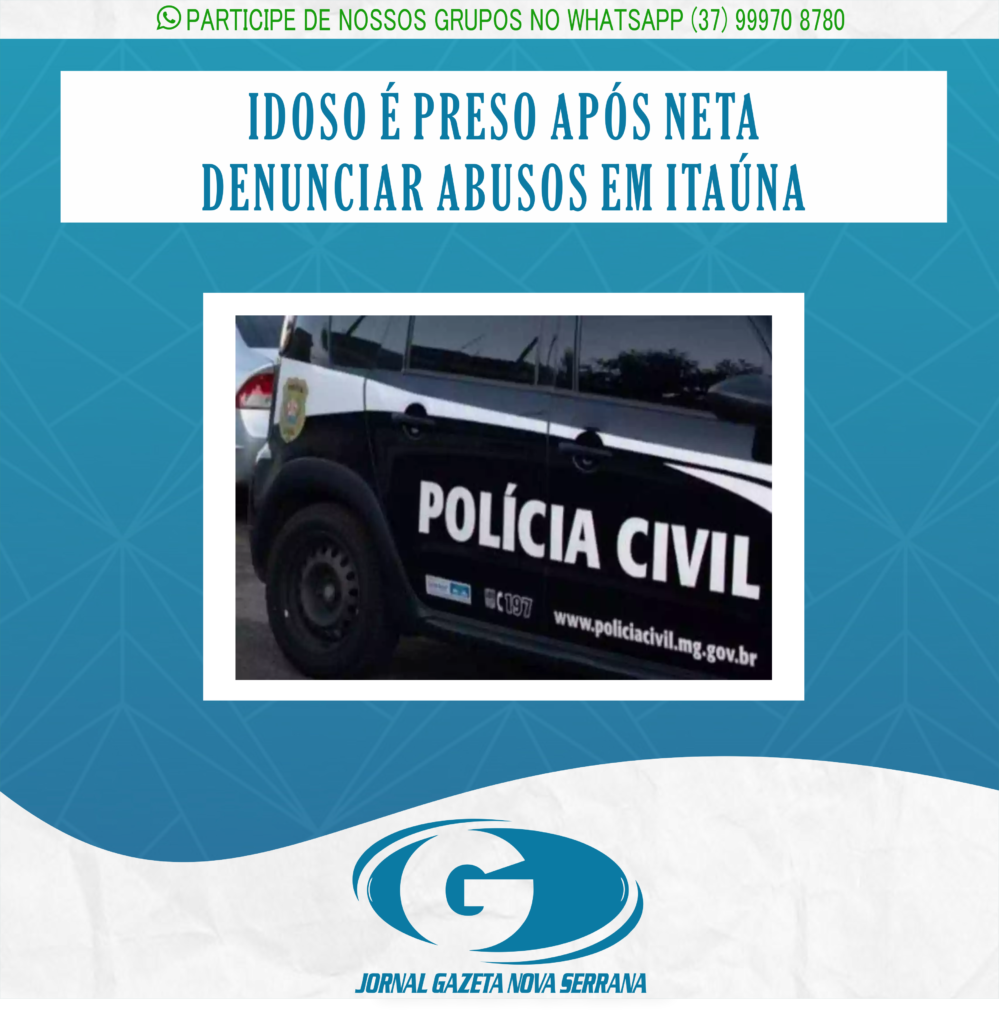 Em Itaúna, a Polícia Civil (PC) prendeu um idoso, de 70 anos, investigado pelo estupro da neta, de 15. Após investigação, a PC representou pela prisão preventiva do suspeito, que foi cumprida na segunda-feira (17).