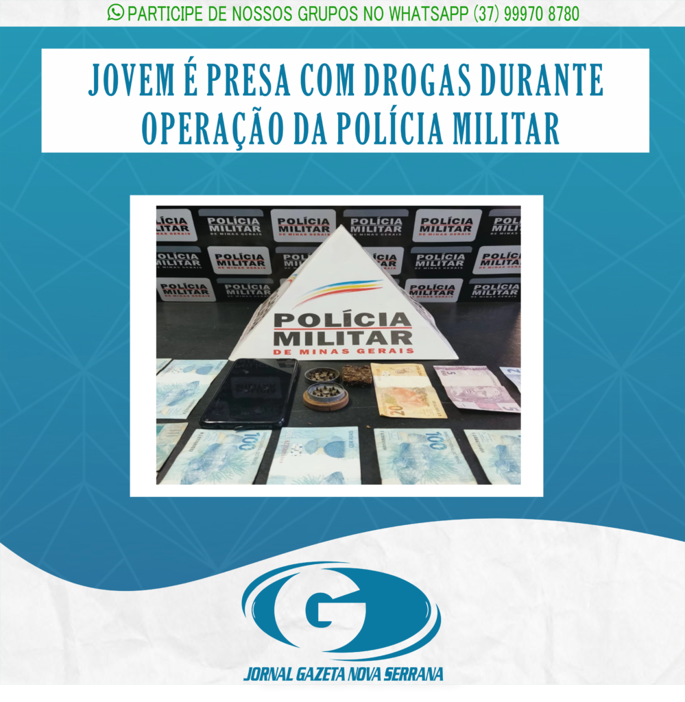 Uma jovem de 19 anos foi presa nesta quarta-feira (27) em Pitangui. Um tablete de maconha e material para preparar drogas foram apreendidos.