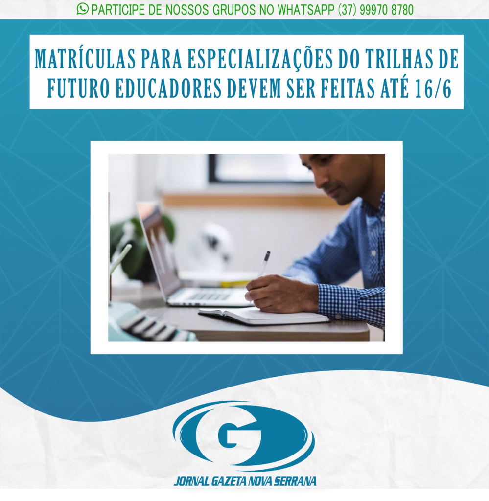 Os profissionais que se inscreveram e foram selecionados para os cursos gratuitos de pós-graduação lato sensu (especialização ou MBA) pelo Trilhas de Futuro Educadores – iniciativa de formação continuada realizada pela Secretaria de Estado de Educação – devem fazer a matrícula na instituição de ensino superior credenciada indicada até o dia 16/6 para garantir suas vagas. As informações e orientações necessárias estão disponíveis no site https://trilhaseducadores.mg.gov.br/