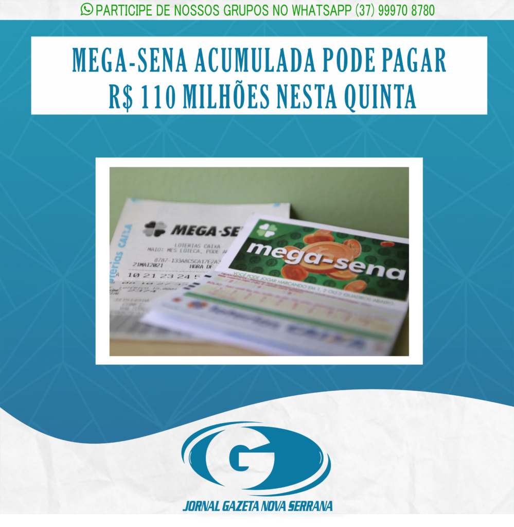 Nenhuma aposta acertou as seis dezenas do concurso 2.519 da Mega-Sena, realizado na terça (13) e o prêmio acumulou. O valor previsto para apostas vencedoras para o sorteio desta quinta-feira (15) é de R$ 110 milhões.
