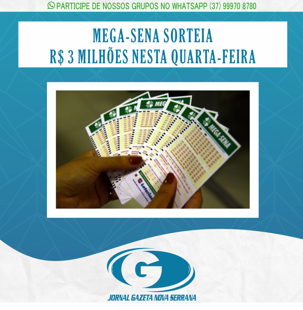 A Mega-Sena pode pagar R$ 3 milhões no sorteio desta quarta-feira (6) pelo concurso 2.469. O sorteio será realizado a partir das 20h. A aposta simples custa R$ 4,50.