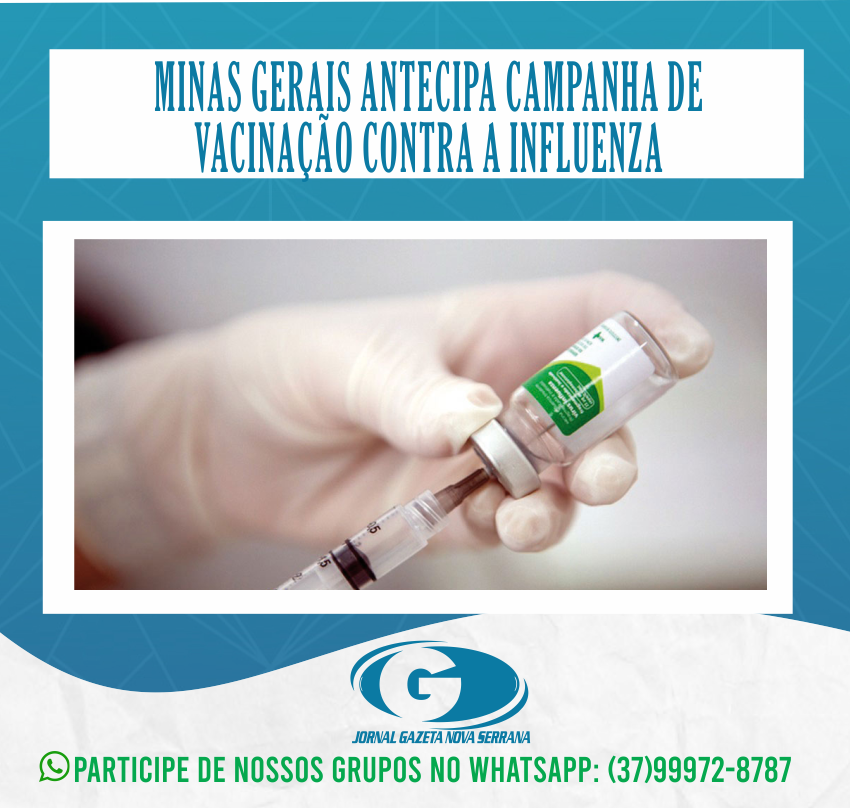 A 24ª Campanha de Vacinação contra a Influenza começará, em Minas Gerais, na próxima segunda (3). No território nacional, a imunização iniciará no dia 10/4, mas a Secretaria de Estado de Saúde de Minas Gerais (SES-MG) decidiu pela antecipação diante da disponibilidade de doses da vacina enviadas pelo Ministério da Saúde (MS).