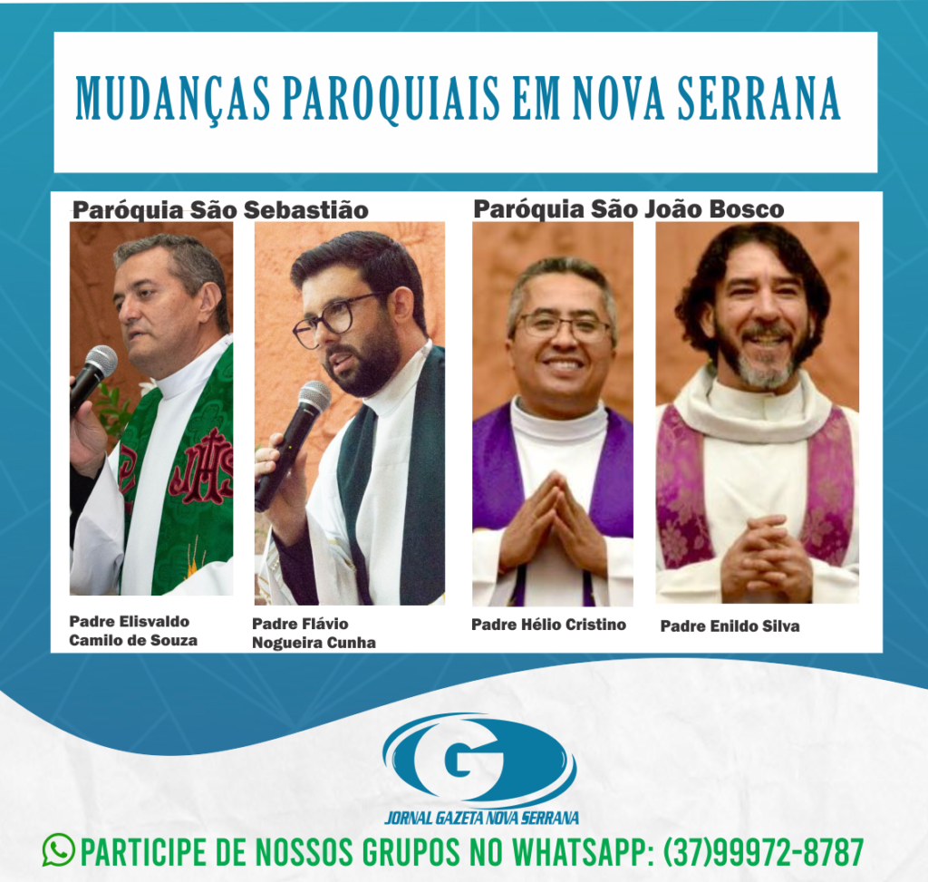 No domingo (5), o padre Elisvaldo Camilo de Souza, que era administrador paroquial na Paróquia Nossa Senhora do Pilar, em Pitangui, foi empossado como novo administrador paroquial na Paróquia São Sebastião de Nova Serrana. O padre Flávio Nogueira Cunha, que atuava na Paróquia São João Bosco, assumiu como vigário paroquial.