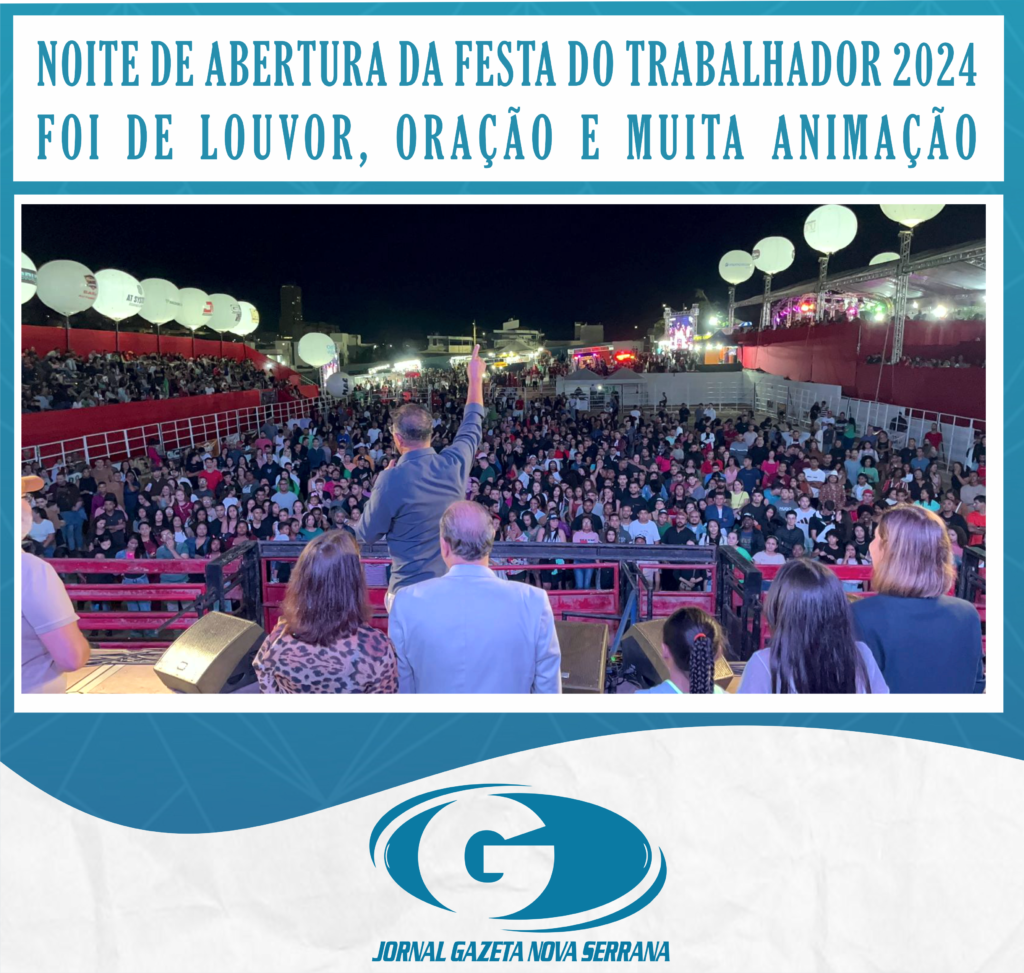 O primeiro dia da Festa do Trabalhador de 2024 de Nova Serrana, nesta quarta (1/5), foi marcado pelo show principal com a banda gospel Som e Louvor que animou o público presente com músicas cristãs. Além da atração principal, diversas bandas locais tocaram para abrir a noite, entre elas: Stéfanno Dias, Ministério de Louvor Família Adoração e Coral Profético.