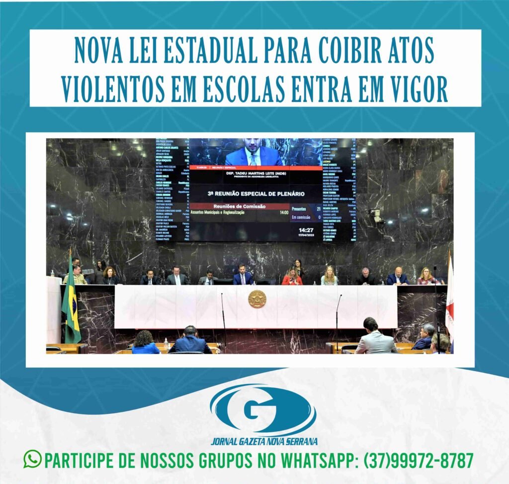O governador em exercício e presidente da Assembleia Legislativa de Minas Gerais (ALMG), Tadeu Martins Leite (MDB), sancionou a Lei 24.315, de 2023, que dispõe sobre a adoção de medidas voltadas para a defesa civil e a prevenção e a mitigação dos efeitos de acidentes e de atos violentos nas escolas da rede pública de ensino do Estado. A sanção foi publicada na edição desta terça (9) do Diário Oficial Minas Gerais.