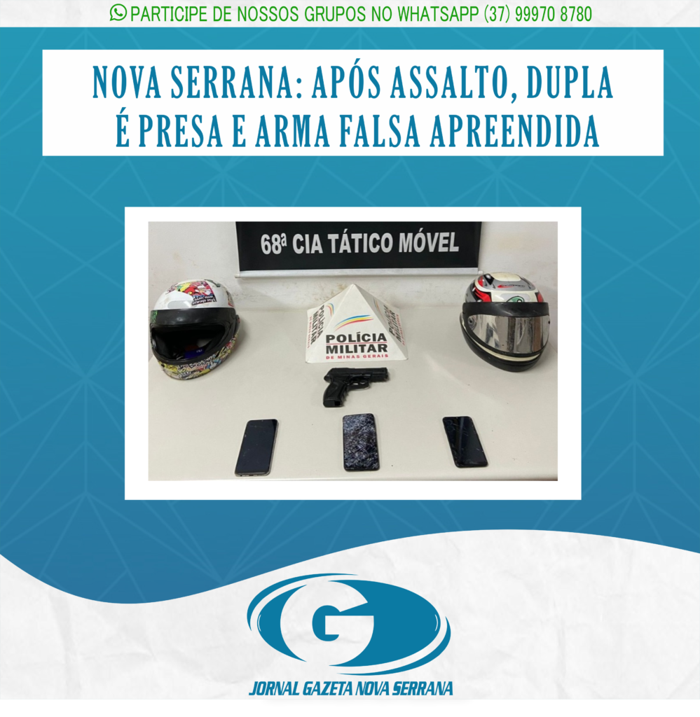 Dois homens, de 24 e 25 anos, foram presos ontem (15) por roubo em Nova Serrana. Uma réplica de arma de fogo foi apreendida.