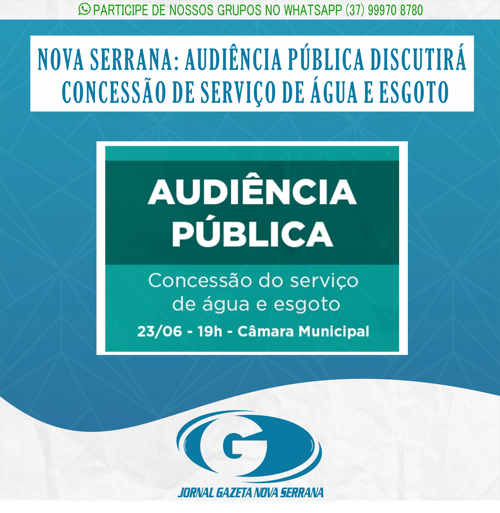 A Prefeitura de Nova Serrana convoca toda a população para participar da Audiência Pública que discutirá os termos da concessão dos serviços de água e esgoto para os próximos anos.