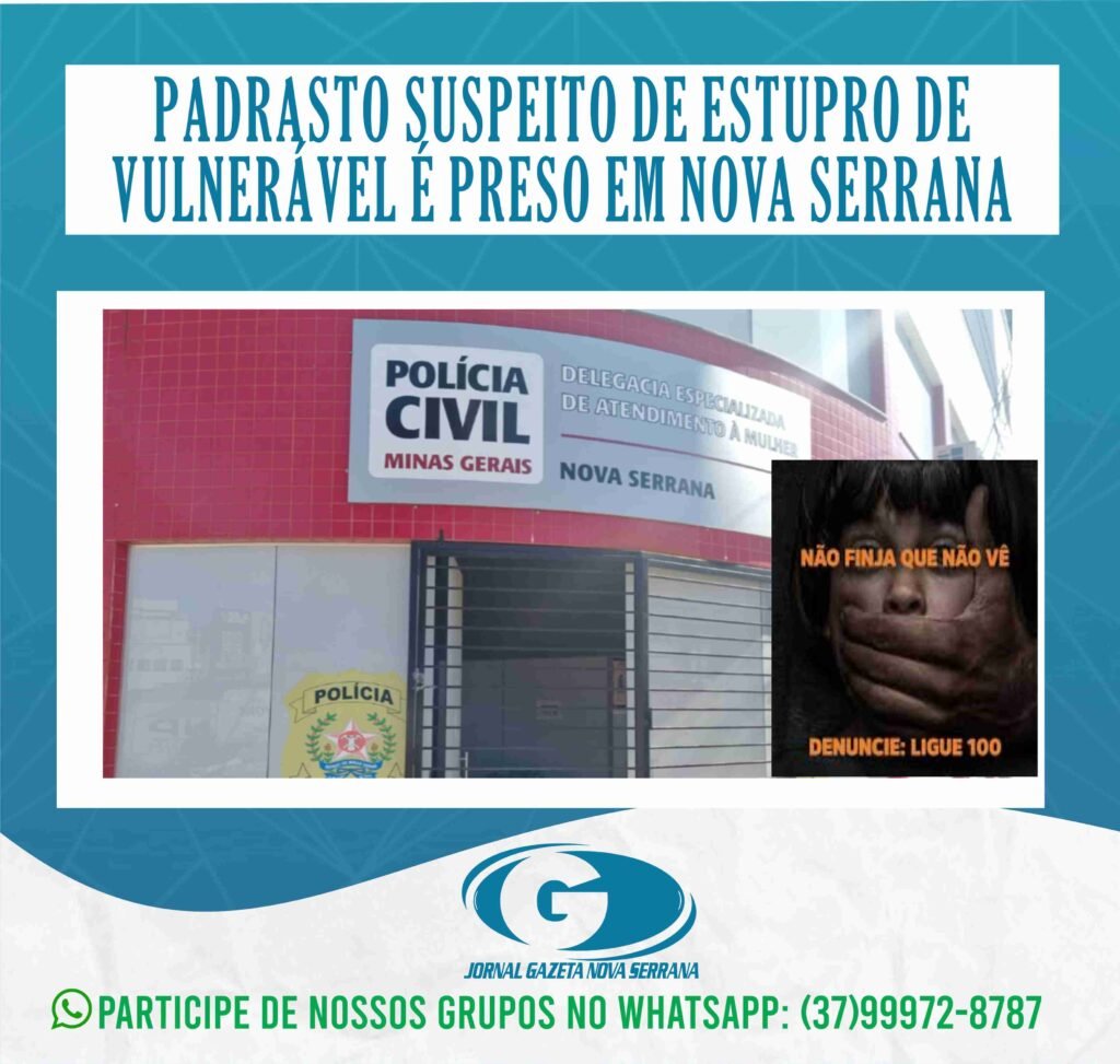 Na manhã desta sexta-feira (2), a Policia Civil de Minas Gerais (PCMG) cumpriu mandado de prisão temporária contra um homem, de 39 anos, suspeito de estupro de vulnerável em Nova Serrana. A vítima, de 14 anos, era abusada desde os 6 anos pelo padrasto.