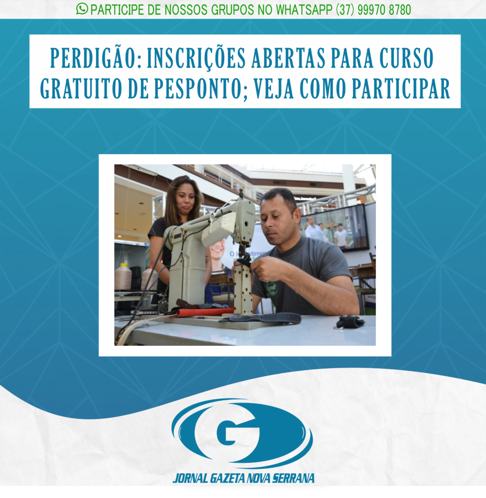 Atenção, Perdigão: estão abertas as inscrições para curso gratuito de Pesponto. A iniciativa é uma parceria do Senai/Fiemg e Prefeitura Municipal.