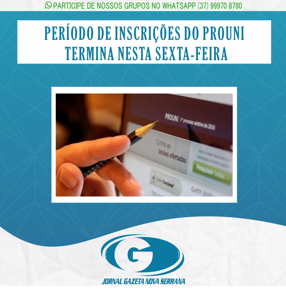 As inscrições para o Programa Universidade para Todos (Prouni) deste segundo semestre terminam nesta sexta-feira (5). Acesse o site para participar: https://acessounico.mec.gov.br/prouni