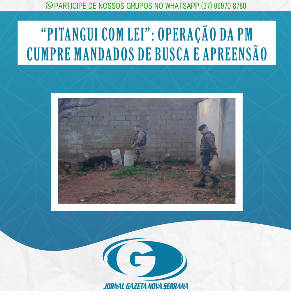 A Operação Pitangui com Lei foi desencadeada nesta quarta-feira (27) pela Polícia Militar. O objetivo foi cumprir mandados de busca e apreensão com foco na prevenção de crimes violentos. Também foram feitas batidas com equipes em pontos estratégicos de bloqueio e interceptação, abordagens a suspeitos e apreensões de materiais ilícitos.