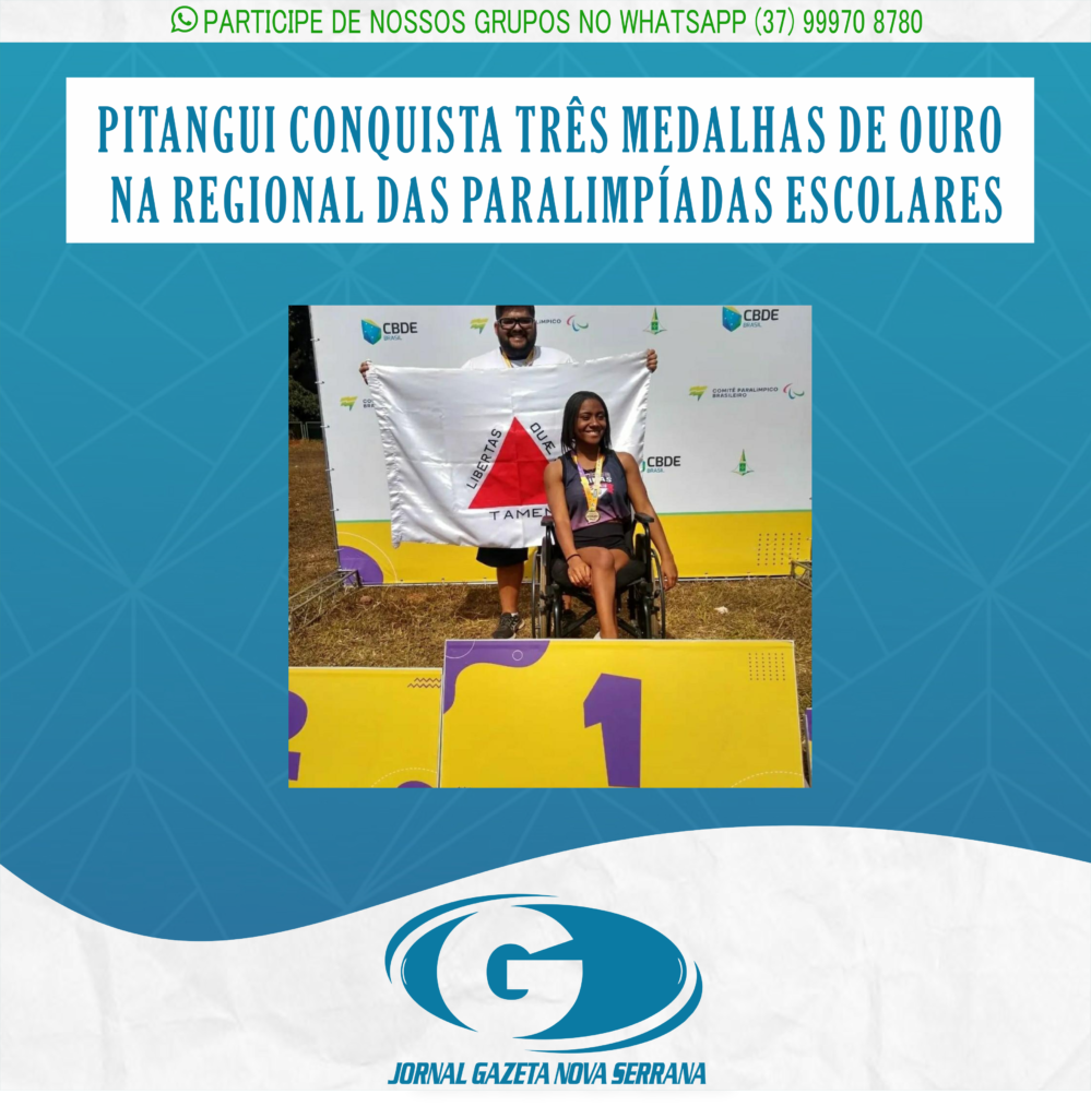 Nesta quarta-feira (10), segundo dia de competição das Paralimpíadas Escolares 2022, e a equipe pitanguiense com três atletas já conquistou três medalhas de ouro. A competição está sendo realizada em Brasília e vai até sexta-feira (12). Os atletas estão acompanhados do professor e treinador Walter Júnior.