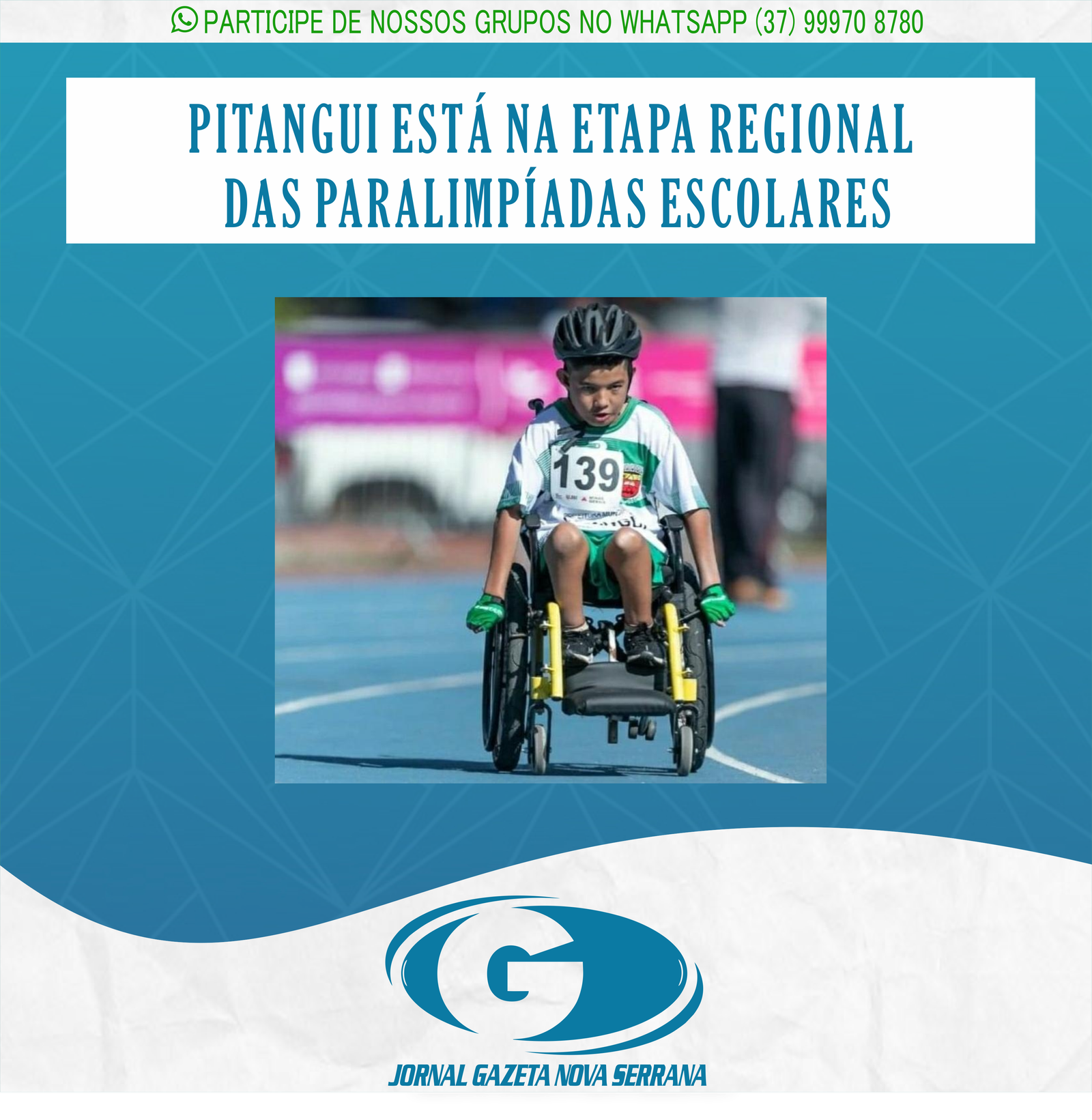 Uma delegação de Pitangui, composta por três alunos/atletas, representa a cidade na etapa regional das Paralimpíadas Escolares 2022 que começaram nesta terça-feira (9) e vai até a próxima sexta (12), na Capital Federal, Brasília.