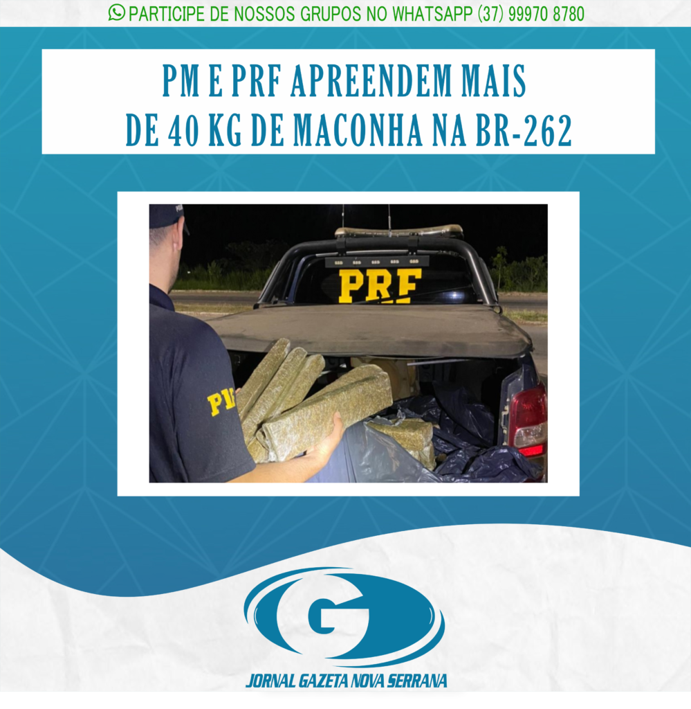 Mais de 40 kg de maconha foram apreendidos na noite de sexta-feira (08) em uma ação da Polícia Militar (PM) e a Polícia Rodoviária Federal (PRF) na BR-262, em Bom Despacho.