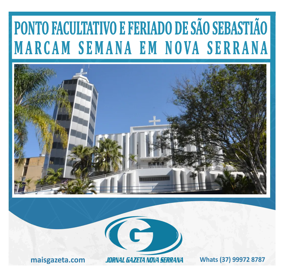 A Prefeitura de Nova Serrana informa como será o funcionamento dos serviços municipais durante o ponto facultativo desta segunda (19) e o feriado municipal de amanhã, terça (20), em razão das celebrações do padroeiro de Nova Serrana São Sebastião.