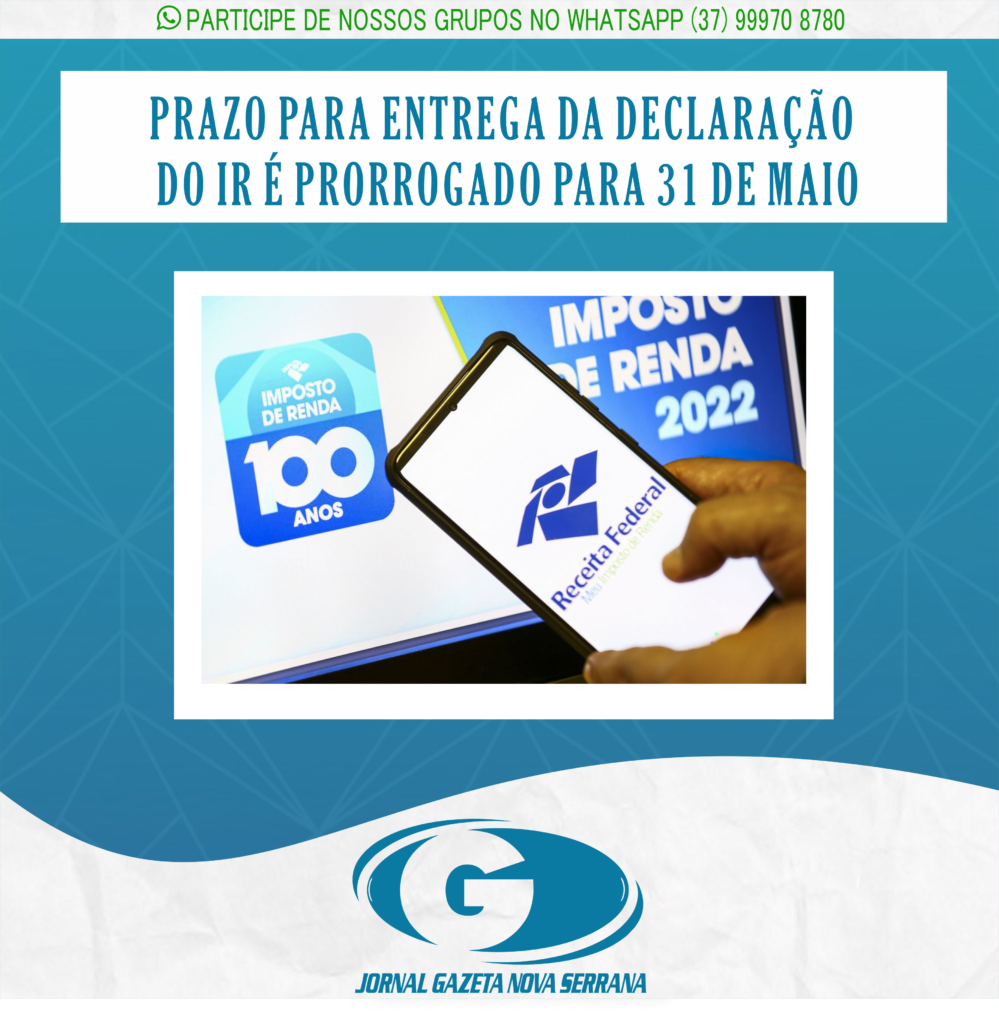 A Receita Federal prorrogou para o dia 31 de maio de 2022 o prazo final para a entrega da declaração de ajuste anual do Imposto de Renda, que tem como base os rendimentos obtidos no ano de 2021. A nova data consta da Instrução Normativa nº 2.077, publicada no Diário Oficial da União desta terça-feira (5). O prazo previsto anteriormente era 29 de abril.