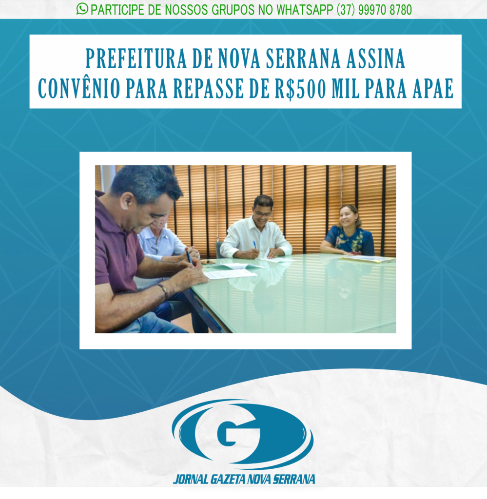 O termo de colaboração entre a Prefeitura de Nova Serrana a Associação de Pais e Amigos dos Excepcionais (Apae) do município foi assinado na última quarta-feira, dia 13 de abril. O convênio prevê o repasse de mais de R$ 550 mil para a instituição, a fim de contribuir na manutenção das atividades oferecidas no local.