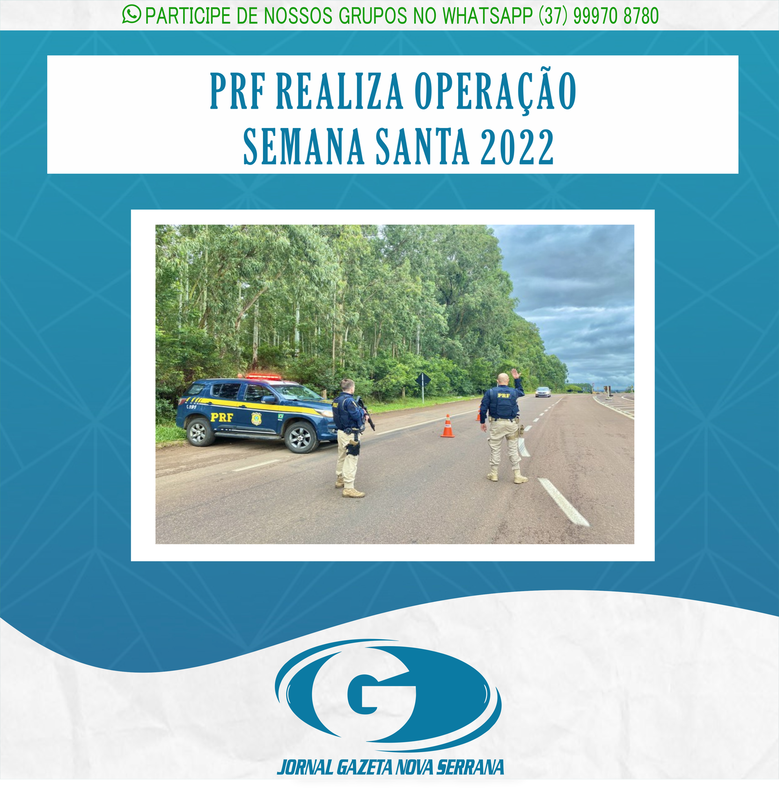 A Operação Semana Santa 2022, com início a 0h01 de 14/04 e término às 23h59 de 17/04, será executada em todo o Brasil Polícia Rodoviária Federal com o objetivo de promover a segurança viária nos deslocamentos pelas rodovias federais.