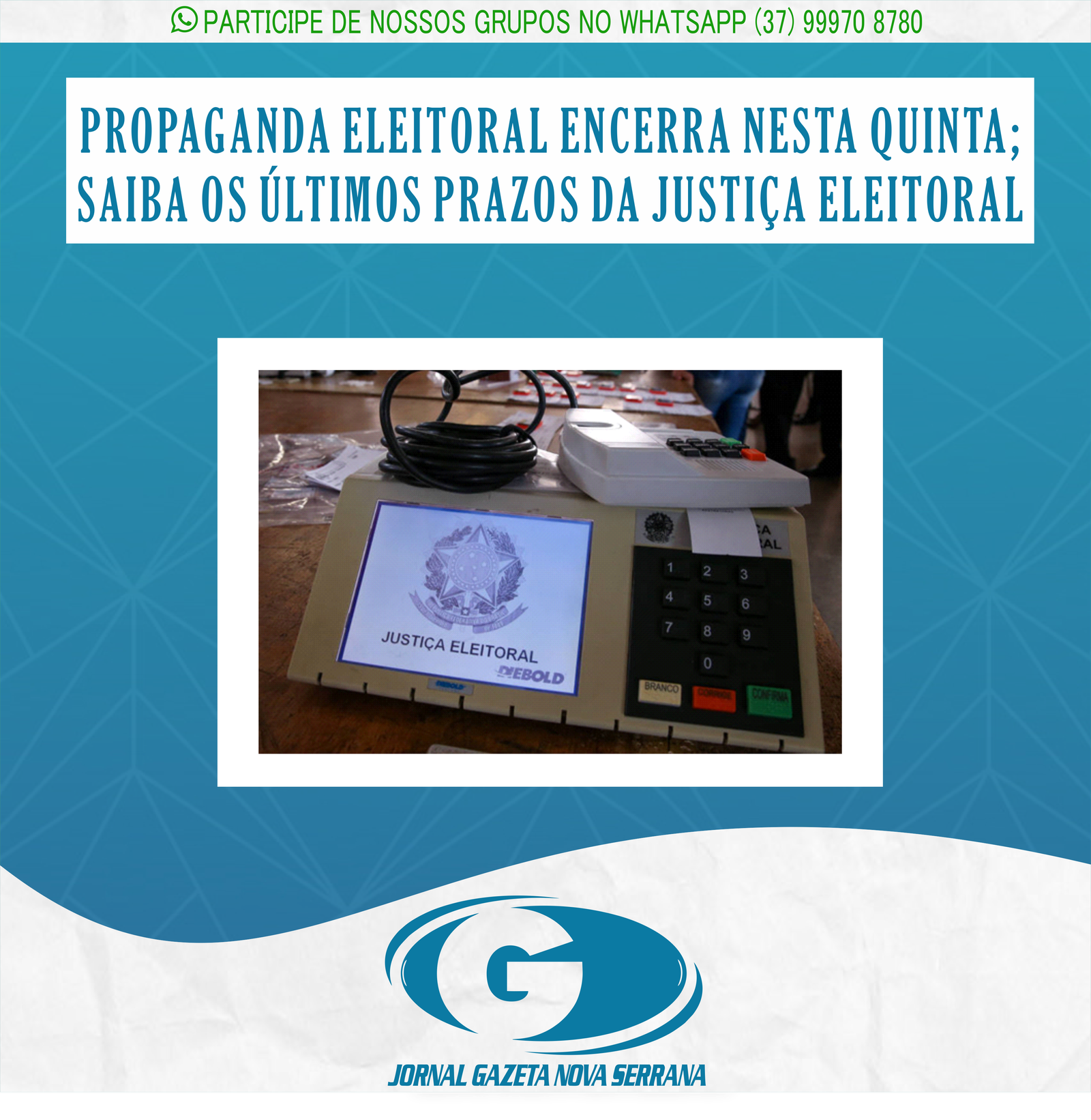 JORNAL GAZETA DE NOVA SERRANA, NOTÍCIA E INFORMAÇÃO EM 1° LUGAR! PARTICIPE DO NOSSO GRUPO NO WHATSAPP: (37)99970-8780