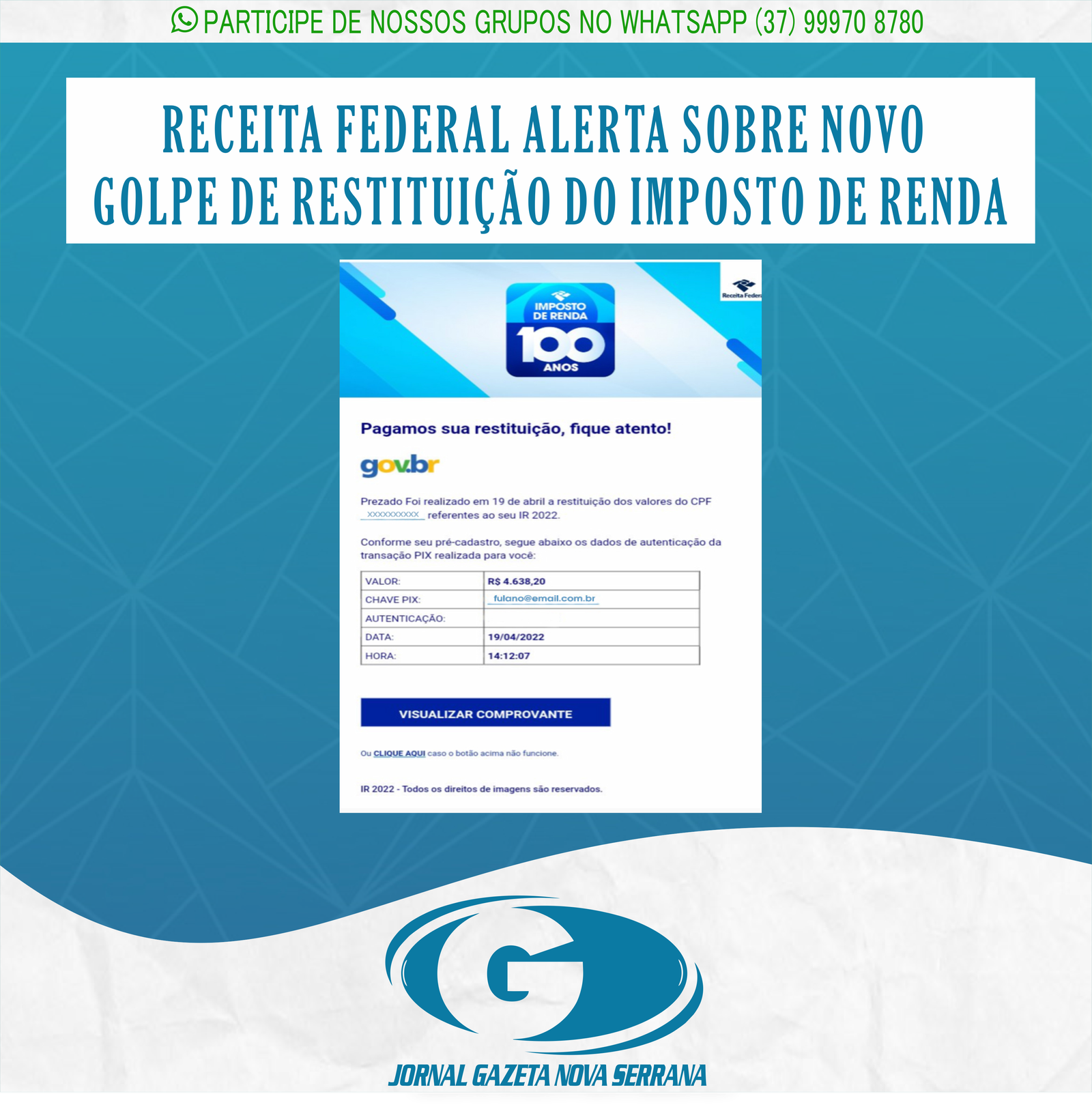 Os golpistas estão utilizando desta vez informações a respeito de restituição de Imposto de Renda Pessoa Física para lesar os cidadãos, em mais uma tentativa de golpe envolvendo o nome da Receita Federal.