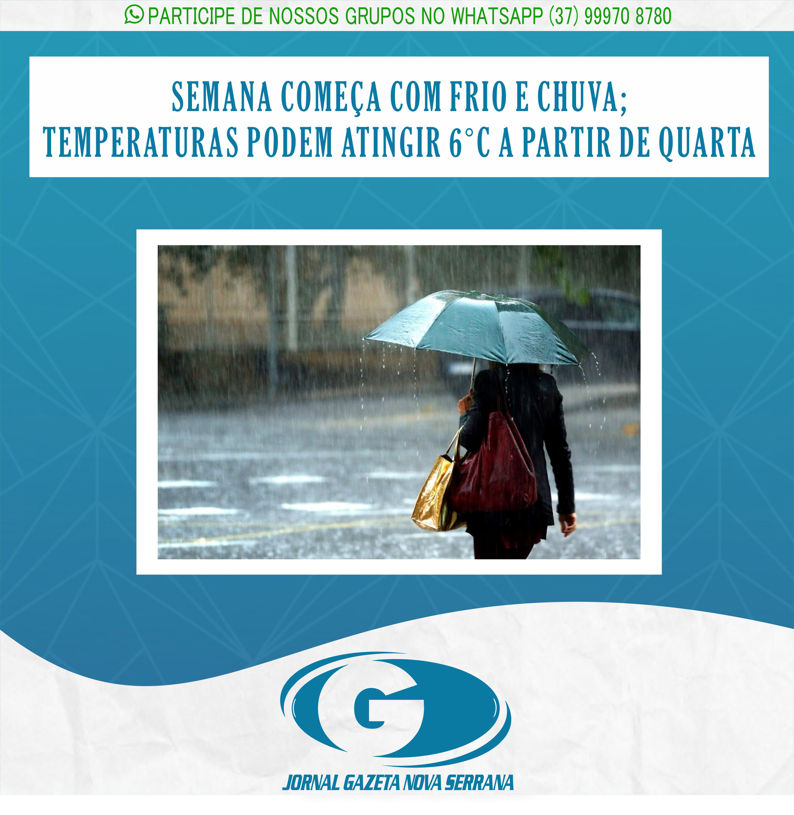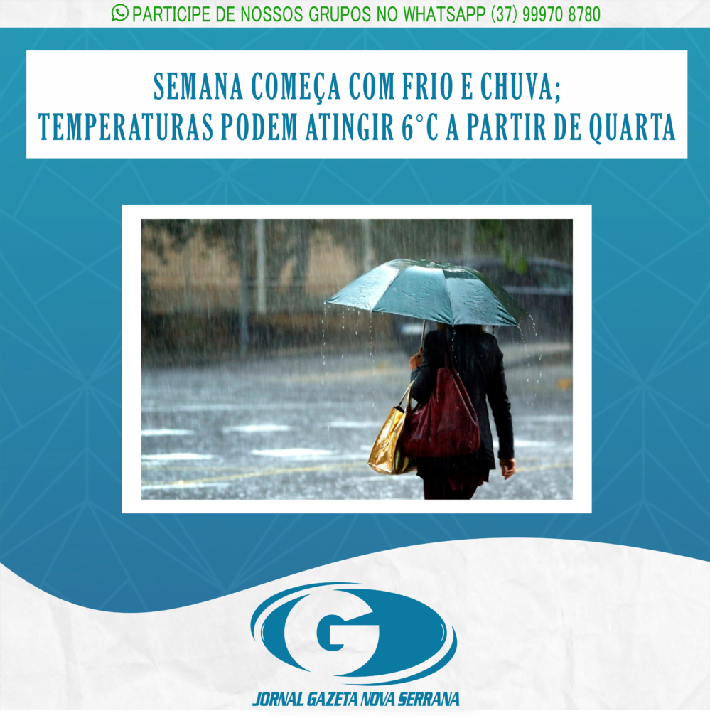 A chuva apareceu no domingo e nesta segunda-feira em várias regiões do Brasil e, em Nova Serrana não foi diferente. O frio maior, no entanto, chega a partir da madrugada de quarta-feira (18).