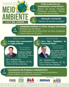 Começa na quinta (1/6), uma programação voltada para o Meio Ambiente em Nova Serrana. Diversas atividades serão promovidas pela Secretaria de Meio Ambiente e Sustentabilidade até a quarta (7).