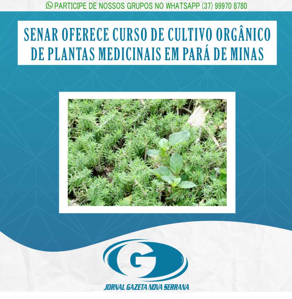 A partir do dia 29 de agosto interessados poderão se inscrever para o curso de cultivo orgânico de plantas medicinais oferecido pelo Serviço Nacional de Aprendizagem Rural (Senar) em Pará de Minas. O objetivo é capacitar profissionais para cultivar espécies de plantas medicinais, aromáticas e condimentares, por meio de técnicas de produção orgânica.